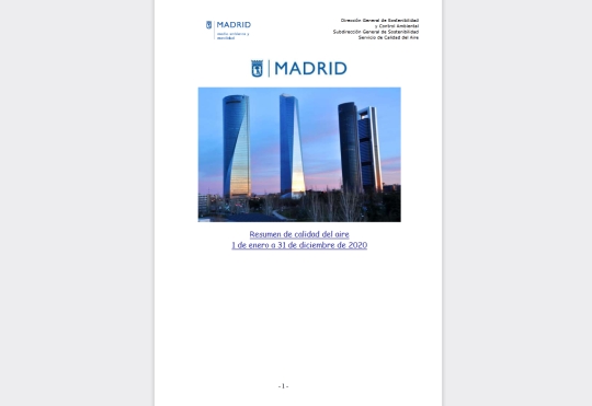 Resumen de la calidad del aire en el municipio de Madrid durante 2020.